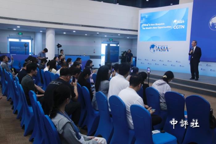 北京大學新結構經濟學研究院院長林毅夫出席博鰲亞洲論壇主辦的記者會(中評社 郭至君攝)