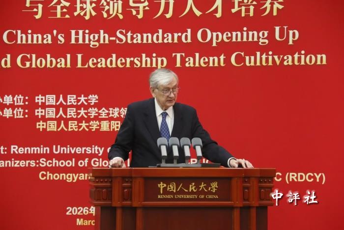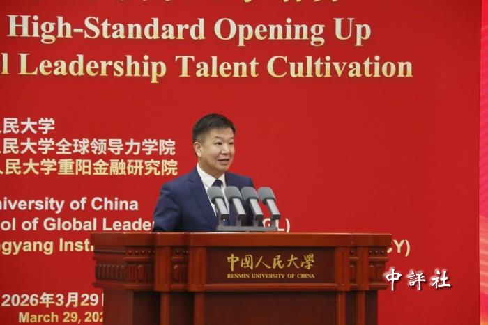 中評社北京3月30日電(實習記者 陳鑫琳)3月29日,一場聚焦“中國高水平開放與全球領導力人才培養”的全球領導力論壇(2026)在京舉行,中國人民大學校長馬懷德指出,培養一大批具有全球視野、通曉國際規則、善於跨文化交流、能夠深度參與全球治理的卓越人才,已經成為關乎國家長遠發展和人類共同未來的戰略工程。