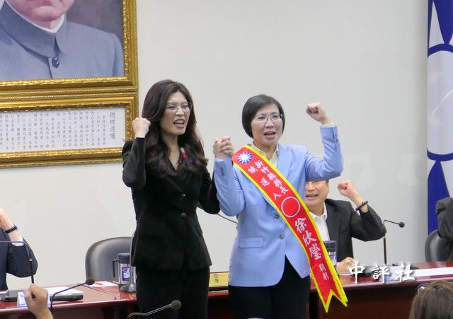 國民黨主席鄭麗文與新竹縣長參選人徐欣瑩。(中評社 張嘉文攝)