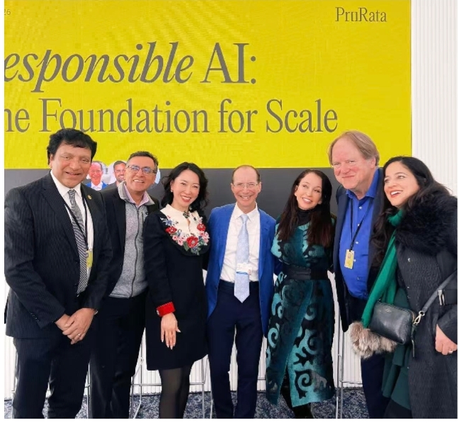 韓穎(左三):達沃斯參加AI論壇討論。