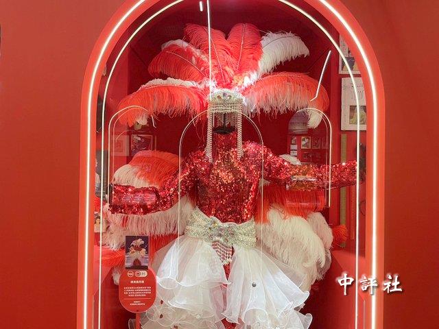 現場展出藝人陳美鳳的秀服,十分華麗。(中評社 蔣繼平攝)