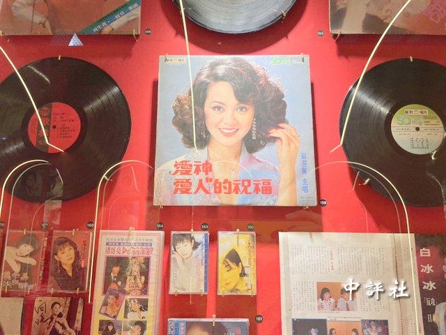 現場展出百件當年的唱片、海報、錄音帶、雜誌等珍貴物品。(中評社 蔣繼平攝)