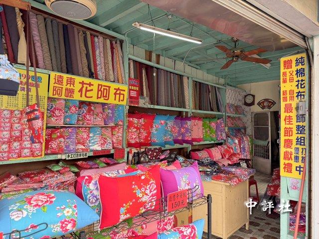 台南市後壁區“菁寮老街”平日營業的店面不多,轉角處有家“阿嬤花布”,可買到枕頭、被單等。(中評社 蔣繼平攝)