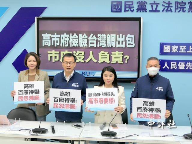 國民黨團今召開“高市府檢驗台灣鯛出包 巿府没人負責?”記者會,黨團書記長羅智強、中國國民黨籍“立法委員”張嘉郡、丁學忠、陳菁徽出席。