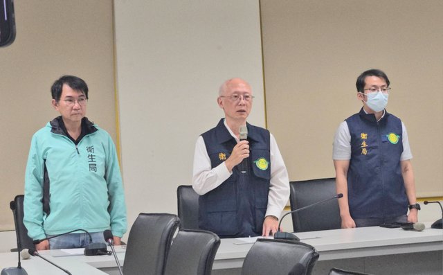 因通報在全聯販售的鯛魚片中檢出禁藥“恩氟喹啉羧酸”鬧烏龍,高雄市衛生局長黃志中(中)4日晚間開記者會致歉。(照片:高雄市衛生局提供)