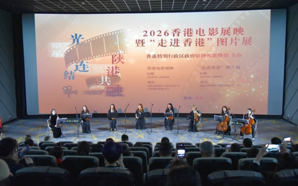 “熟悉的旋律一響起就勾起太多的回憶。”“動作場面震撼,劇情細膩,直擊人心。”2026香港電影展映暨“走進香港”圖片展開幕當日,活動現場氣氛熱烈。主辦方不僅安排了電影音樂快閃表演,特設經典電影海報展、金曲聆聽區及打卡點,同時還特邀陝西交響樂團雲杉樂團和歌手崔一喬,通過古箏、琵琶、小提琴等中西樂器聯袂演繹耳熟能詳的香港經典歌曲,讓觀眾在視聽交織中沉浸式感受香港電影與音樂的獨特魅力。