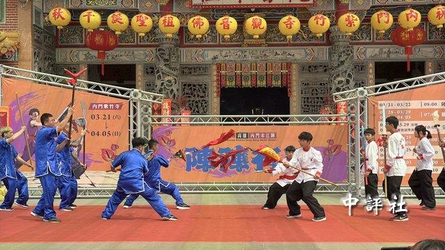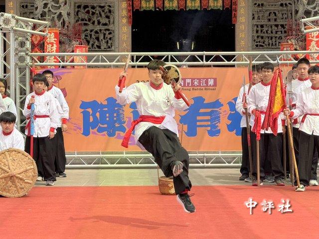 內門國中傳統宋江陣與內門子弟創意宋江陣上場表演。(中評社 蔣繼平攝)
