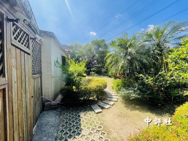 戶外則是有草皮小花園,老家後方堆置雜物,如今還有圍欄小走道,可看到樹林、溪水。一旁就是一棵大樹,對面也有空地草皮大樹,與鄰居家一字排開,還有停車的籃球場等。