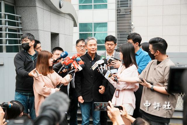 金溥聰31日前往刑事警察局提告網路AI影片,接受媒體採訪。(中評社 莊亦軒攝)