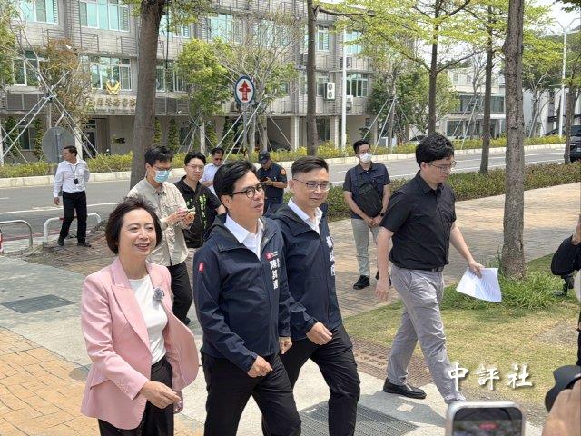 民進黨籍高雄市長陳其邁、民進黨台中市長參選人何欣純、民進黨高雄市長參選人賴瑞隆2日在高雄同框。(中評社 蔣繼平攝)