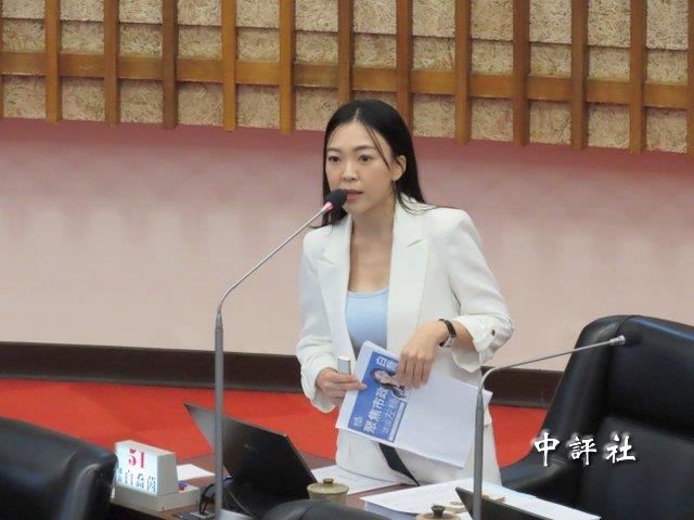 國民黨籍高雄市議員白喬茵1日在議會質詢。(中評社 蔣繼平攝)