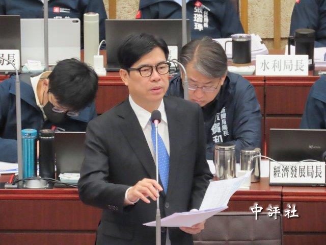 民進黨籍高雄市長陳其邁1日在議會答詢。(中評社 蔣繼平攝)