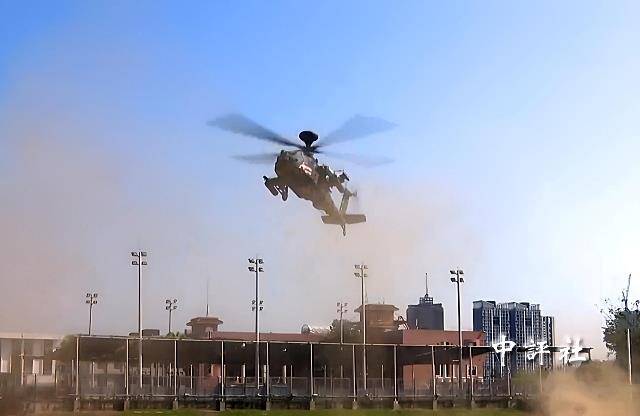 阿帕契直升機滯空盤旋。(中評社 方敬為攝)