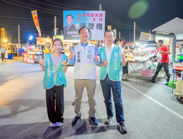 藍委羅智強、徐巧芯陪同民眾黨嘉義市長參選人張啓楷拜票。(照片:張啟楷臉書)