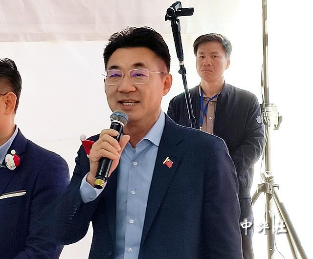 江啟臣致詞。(中評社 方敬為攝)