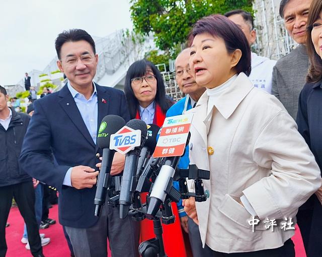 盧秀燕、江啟臣一同接受媒體聯訪。(中評社 方敬為攝)