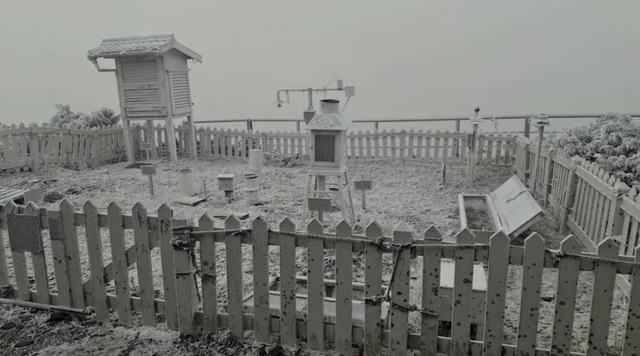 中評社台北12月26日電/大陸冷氣團26日強襲、加上東北季風挾雨,全台明顯又濕又冷,其中玉山風口稍早測出最低溫-5.5℃,直到清晨6時28分玉山北峰出現降雪、時間約十分鐘。台灣雪霸桃山山屋與新達山屋被高山協作人員發現今天清晨降雪過後,山區一片銀白色美景,積雪皆達4公分。