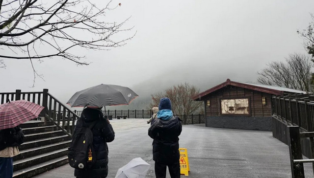 氣象署今天表示,玉山北峰清晨6時28分至6時38分降雪,未完全覆蓋地面,無雪深。“農業部”林業及自然保育署宜蘭分署上午指出,海拔1900多公尺的太平山森林遊樂區,清晨6時30分起間歇性降下冰霰,地面也結霜,迎來銀白美景。合歡山清晨低溫搭配水氣,間歇降下冰霰,部分路面結冰,限加掛雪鏈通行。