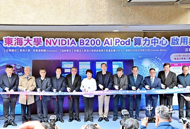 東海大學因應科技趨勢,持續投入建置AI教學環境,5日舉辦“NVIDIA B200 AI Pod算力中心”啟用典禮,該中心由英業達董事李詩欽斥資新台幣3千萬元打造,包括台中市長盧秀燕、副市長鄭照新、數位發展局長林谷隆、東海大學董事長吳清邁、校長張國恩等人共同剪綵見證。