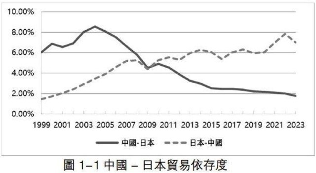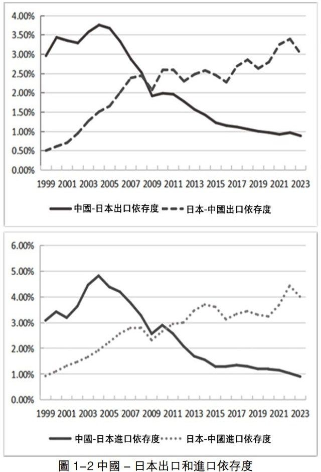 從進出口依存度的雙向變動看,中日貿易關係呈現“中國對日本依存度全面下降,日本對中國依存度持續上升”的特徵。這一演變表明中國經濟結構優化、貿易多元化戰略成效顯著,也凸顯了日本對中國市場與供應鏈的需求加深,反映出東亞經濟格局中中日市場需求與產業供給關係的動態調整。