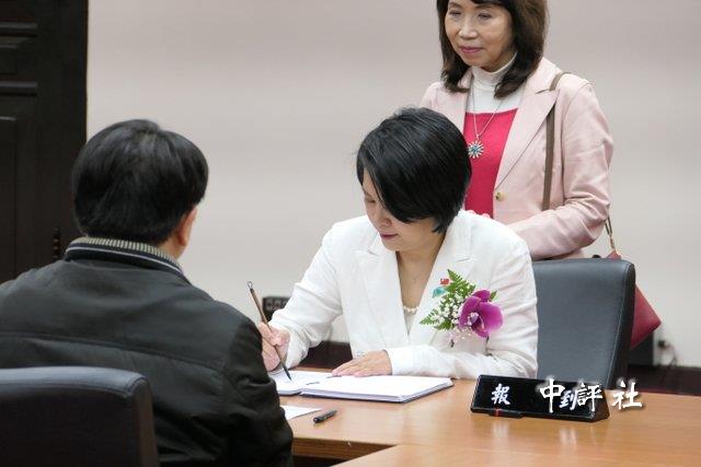 具陸配身分的白委李貞秀報到。(中評社 張嘉文攝)
