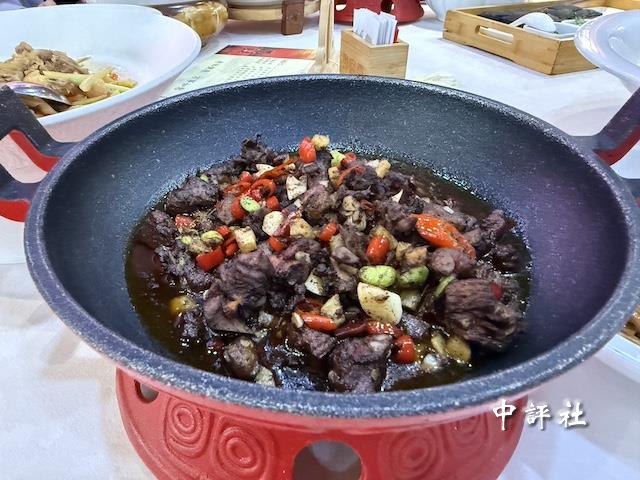 特色湘菜乾鍋血鴨,辣度十分下飯。(中評社 鄭羿菲攝)