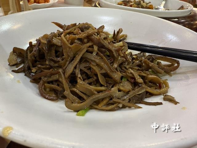 烟筍炒肚絲。(中評社 鄭羿菲攝)