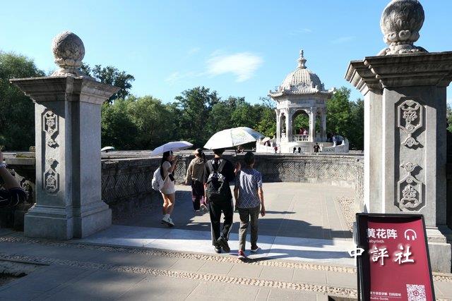 中評社北京9月2日電(記者 盧誠輝)圓明園是許多遊客到訪北京必去的景點之一,在圓明園內有一座黃花陣迷宮,更受到遊客的歡迎,許多遊客到圓明園內幾乎都會走一趟黃花陣迷宮,最後再到黃花陣中西點的涼亭拍照打卡合影留念,也因此成為圓明園的另類風景。