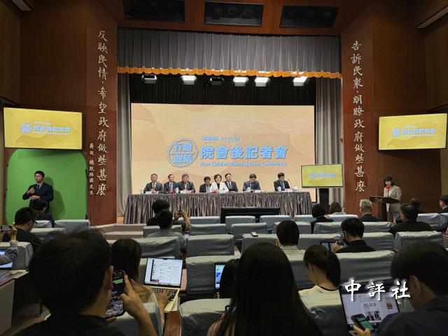 “行政院”2日召開院會後記者會,由發言人發言人李慧芝主持,上半場主題為因應中東情勢發展,“行政院副院長”鄭麗君、“政務委員”陳時中、林明昕、政委兼“國發會主委”葉俊顯、“經濟部次長”何晉滄、“農業部次長”黃昭欽、“衛福部次長”莊人祥、“法務部次長”馮成出席。